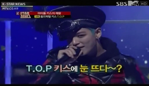 4월 19일, SBS E! &'K-STAR news&'(MC 손호영, 유연지)에서는 개그맨 정성호와 함께 아이돌에 관련된 은밀한 궁금증을 랭킹으로 보여주는 &'빅매치 아이돌 랭킹&'코너가 진행되었다. 이번주 &'빅매치 아이돌 랭킹&'에서는 달달한 아이돌들의 사랑고백과 키스를 정리해본 &'아이돌 키스의 제왕&'코너가 진행되었다. 못하는 거 없는 대한민국 아이돌, 이젠 키스까지 잘한다? 키스로 대한민국을 뜨겁게 달군 아이돌, &'K-STAR news&'에서는 키스에 출중한 능력을 보인 아이돌 중 &'아이돌 키스의 제왕&'에 대해 알아보았다. &'아이돌 키스의 제왕&' 5위에 등극한 스타는 빅뱅의 비주얼 대표 TOP! 머리 끝부터 발끝까지 모든게 다 한 수 위인 섹시 카리스마 탑은 그 이름값을 하는지 화끈한 대형사고를 쳐서 대한민국 발칵 뒤집어놓았다. 그는 한 방송에서 수 천명의 관객 앞에서 이효리와 무대 위에서 키스 퍼포먼스를 보여 화제가 되었다. 탑에게 키스 퍼포먼스 하게 된 이유를 묻자, &'원래 계획에는 이마에 뽀뽀를 퍼포먼스였는데, 전날 방송국에서 자극적이고 신선한 무대를 보여줄 수 있는 퍼포먼스가 있었으면 좋겠다고 해서 시도한 것이다&'라고 밝혔다. 팬들과 시청자를 들썩이게 한 퍼포먼스의 주인공인 탑은 &'그냥 퍼포먼스로 봐달라&'며 쿨한 반응을 보였다. 그런데 이효리와의 키스는 탑의 &'키스 역사&'의 시작에 불과했다. 키스에 눈 뜬 탑은 입술에 발동이 걸렸으니, 거미의 뮤직비디오에서 YG 최고의 미녀 산다라박과 입을 맞추더니 그 후에는 드라마 출연하여 쥬니와 키스를 하고, 광고에서도 미녀배우 신세경과 만나 키스를 하였다. 아이돌 중 독보적인 탑의 키스! 그는 어린시절부터 키스에 대해 남다른 면모를 보였다고 밝혀 주목을 받았다. 탑은 &'강심장&'에 출연하여 &'어느 날 집 앞에서 &'엄마 나와봐&'라고 고래고래 소리를 질렀고, 그 소리에 엄마가 집 밖으로 나오자 엄마를 바라보면서 의미심장한 미소를 띄우고는 유치원 시절 여자친구와 뽀뽀하는 모습을 보여주었다&'며 어린 시절 키스에 얽힌 에피소드 공개하였다. 유년시절부터 독특했던 탑의 키스관 때문인지, 탑의 키스 세례는 성별을 가리지 않아 더욱 놀라움을 샀다. 탑의 키스 첫 번째 희생자는 양갈래 머리를 한 &'대성&'으로, 탑은 그의 입술을 강탈하였다. 그 후 탑은 멈추지 않고 빅뱅의 막내 &'승리&'에게도 막내라고 봐주지 않고 키스하였다. 거기서 한 발 더 나아간 탑은 &'멤버의 입술은 다 내 것!&'이라고 표현하는 듯 지드래곤과도 키스를 하였다. 지드래곤은 강심장에 출연하여 탑과의 키스신 비화를 공개하였다. 지드래곤은 &'입술만 대면 되는데 탑이 키스신에 너무 진지하게 임했다&'라고 폭로하자 탑은 &'남자끼리 키스신을 찍는데 진지하게 하면 웃기니까 웃음을 위해 진지하게 임했다&'라고 해명하였다. 무려 멤버 3명의 입술을 훔친 탑에게 멤버들은 &'빅뱅의 옴므파탈&'이라는 별명을 지어주었다. 남녀 가리지 않고 키스신을 선보인 탑은 결국 &'아이돌 키스의 제왕&'에 등극하였다. [SBS 통합온라인 뉴스센터 VJ 정가희, 영상 제공 = SBS E! K-STAR news]